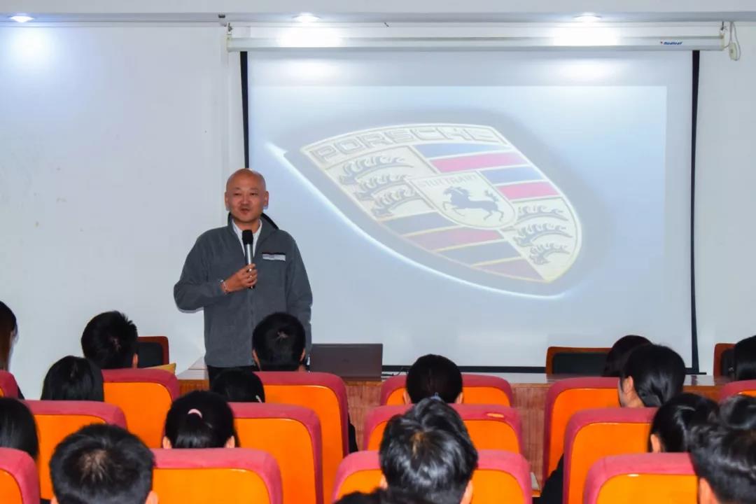 在“開啟你的保時捷品質實習生之旅”交流會上,保時捷(中國)PEAP項目經理李衡、保時捷中心代表一行高管以及汽車工程系負責人、PEAP項目教師均一一列席,汽車工程系、經貿系約200余名學生代表聆聽了此次宣講會。汽車工程系主任鄭大國擔任主持。