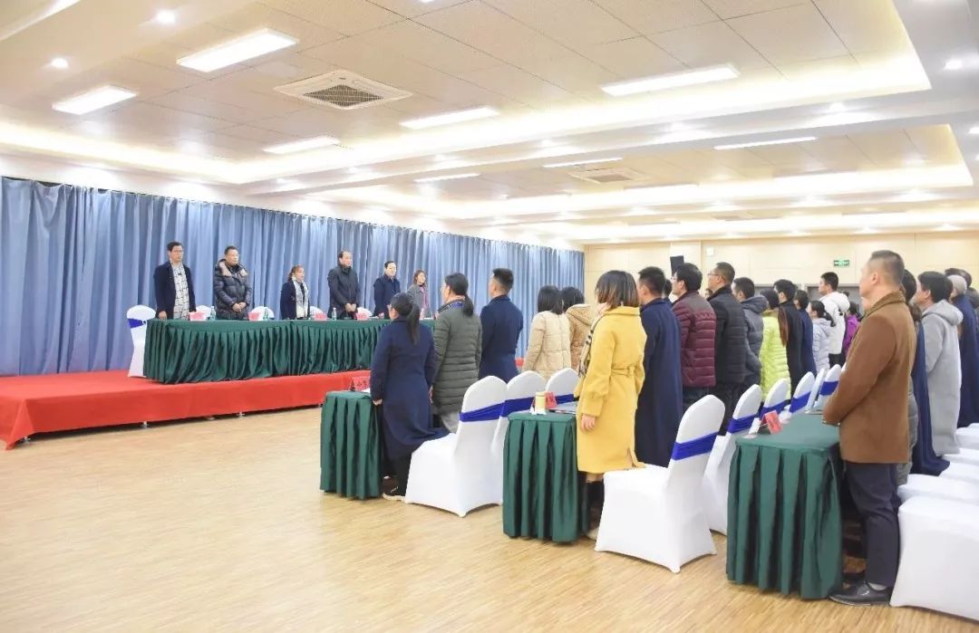 冬至到,天易寒,但衡實校園知行樓二樓音樂廳卻暖意濃濃——大余衡水實驗學校于12月23日晚上隆重召開第一屆教職工大會。出席本次教代會的有大余衡實校長兼黨支部書記王躍平及全體班子成員和69名教職工代表。