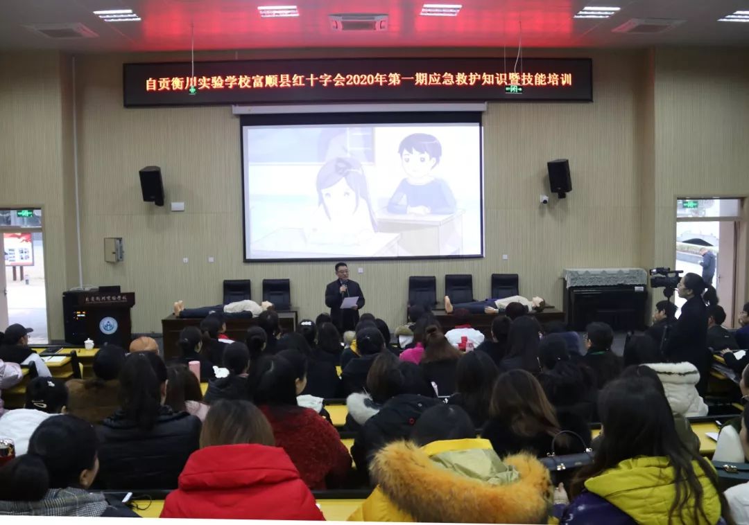 為普及應急救護知識和技能,增強自救互救、防災避險的能力,1月10日,我校舉行2020年第一期應急救護知識技能培訓,縣紅十字會陳繼孝主任及紅十字會救護培訓師一行8人受邀到校開展培訓。校長尹強、后勤安全中心、全體生活教師、體育教師、醫務室人員、安保隊員等120余人參加培訓。