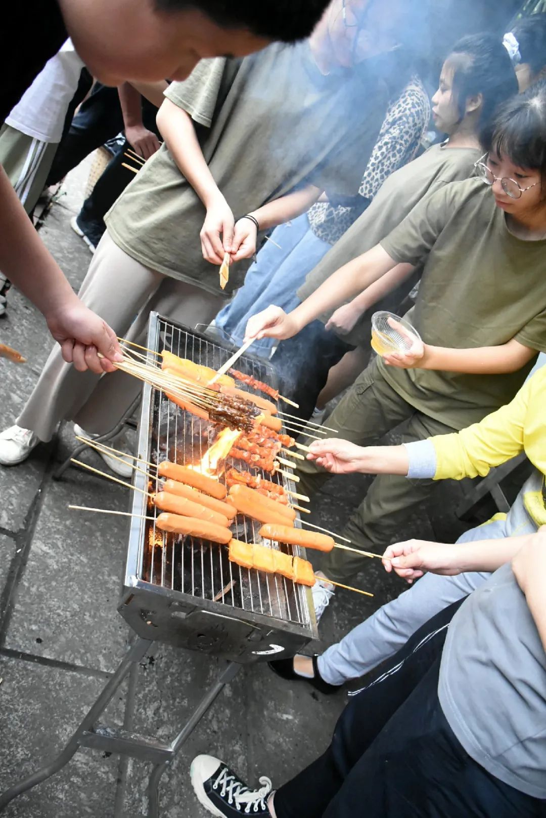 我們的重要嘉賓——科任老師陸續(xù)華麗登場(chǎng),一同共享午餐。這些誘人的燒烤食材讓人垂涎三尺,大家迫不及待地圍著燒烤架,想要立即把炭火燒起來(lái)。