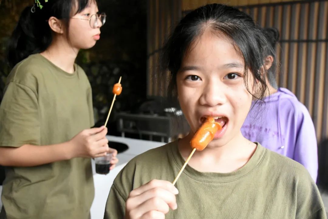 一串串肉被擺在烤架上,醬料被調(diào)配著,歡笑大鬧間,丫山下的我們是如此可愛(ài),“大廚”翻著烤肉,平日不愛(ài)勞動(dòng)的“大哥”這時(shí)也變得勤奮可靠,一直為大家烤食物,是“大廚”中的中流砥柱,老師們也檫拳磨掌,在燒烤一線奮戰(zhàn)。
