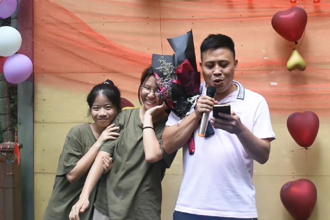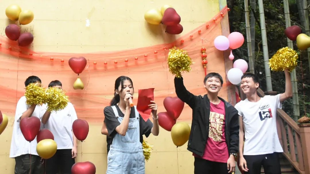 吃飽喝足便是節(jié)目表演環(huán)節(jié),老師的《日不落》活躍氣氛,現(xiàn)場(chǎng)成為打歌舞臺(tái),輕快酷炫的rap讓大家飽享耳福,搞笑有趣的廣西版《有何不可》讓大家捧腹大笑,熟悉的歌謠使得在底下的觀眾情不自禁地跟唱起來(lái),小伙伴們組成一個(gè)個(gè)小團(tuán)隊(duì),在舞臺(tái)散發(fā)著獨(dú)具特色的光芒,歌聲夾著尖叫聲,打call聲響徹丫山,送花合影讓我們更親密了,每個(gè)人的臉上都洋溢著笑容,負(fù)責(zé)接送我們的劉老師最后也按捺不住了,唱起了動(dòng)聽(tīng)的經(jīng)典歌曲《濤聲依舊》和《橋邊姑娘》。