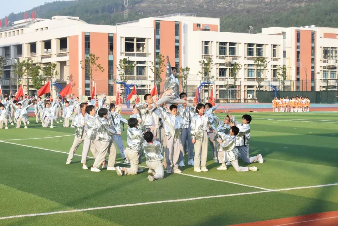 足球場的正中央,中學部的健兒們組成整齊劃一的方陣,帶著矯健的身姿和瀟灑靈動的舞步拉開了大余衡水實驗學校第二屆體育節的序幕。衡實的孩子跟隨著歡樂的節拍,盡情的展現著屬于他們的熱情和動感。