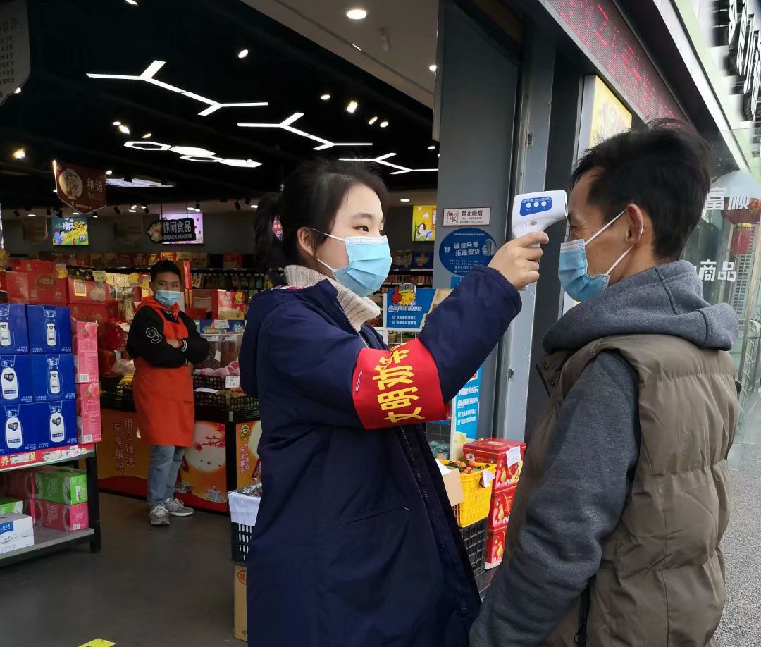 ▲ 協(xié)助社區(qū)開(kāi)展入戶登記工作,為居民進(jìn)行體溫監(jiān)測(cè),并簽署居家承諾書(shū)。